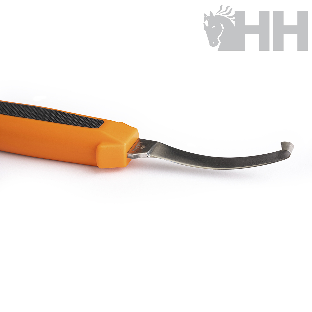 • Hoja más curvada que la de los cuchillos para pezuñas estándar.