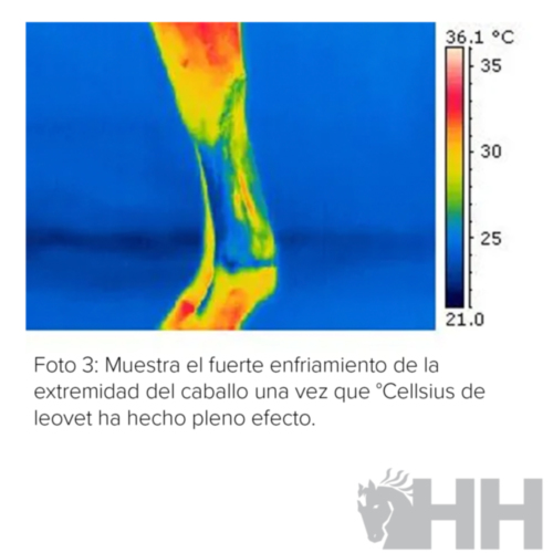 - Conserva el efecto refrescante logrado por la ducha de las extremidades del caballo. Se puede aplicar sobre las manos y pies húmedos y permanecerá en su sitio como un protector refrescante.