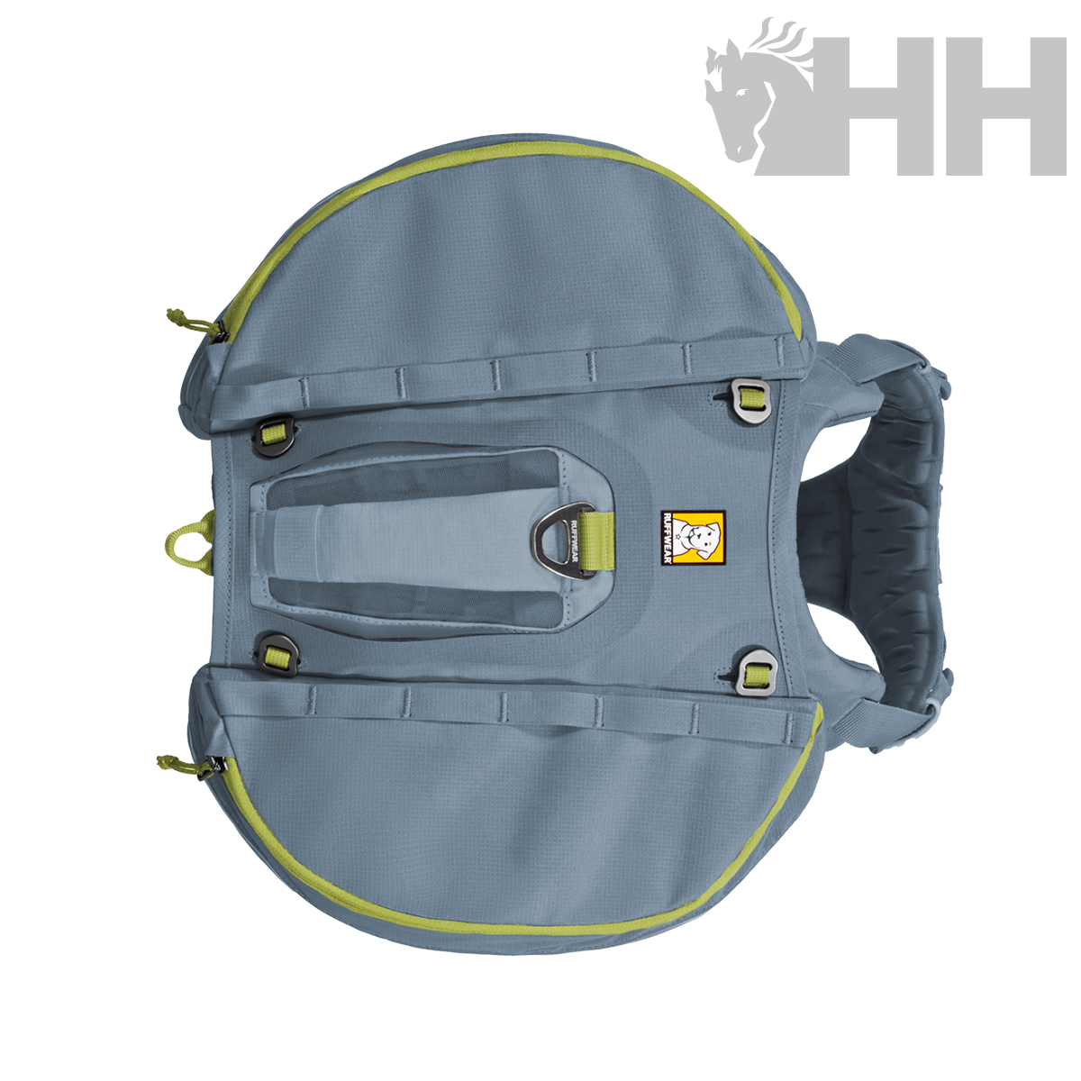 • Transporte estable del equipo: las alforjas con corte radial y peso hacia delante y los «flopper stoppers» mantienen la mochila y su contenido estables contra tu perro.
