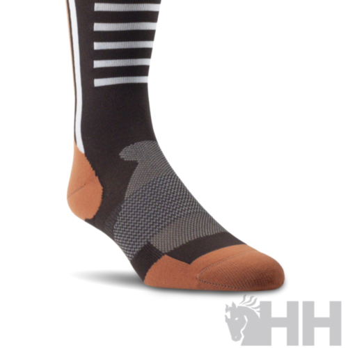 Entra en la comodidad con los calcetines AriatTEK® Slimline Performance. Estos calcetines y su exquisito diseño, ofrecen un acolchado específico para los pies del jinete y le brindan una excelente comodidad en sus botas de montar durante todo el día.