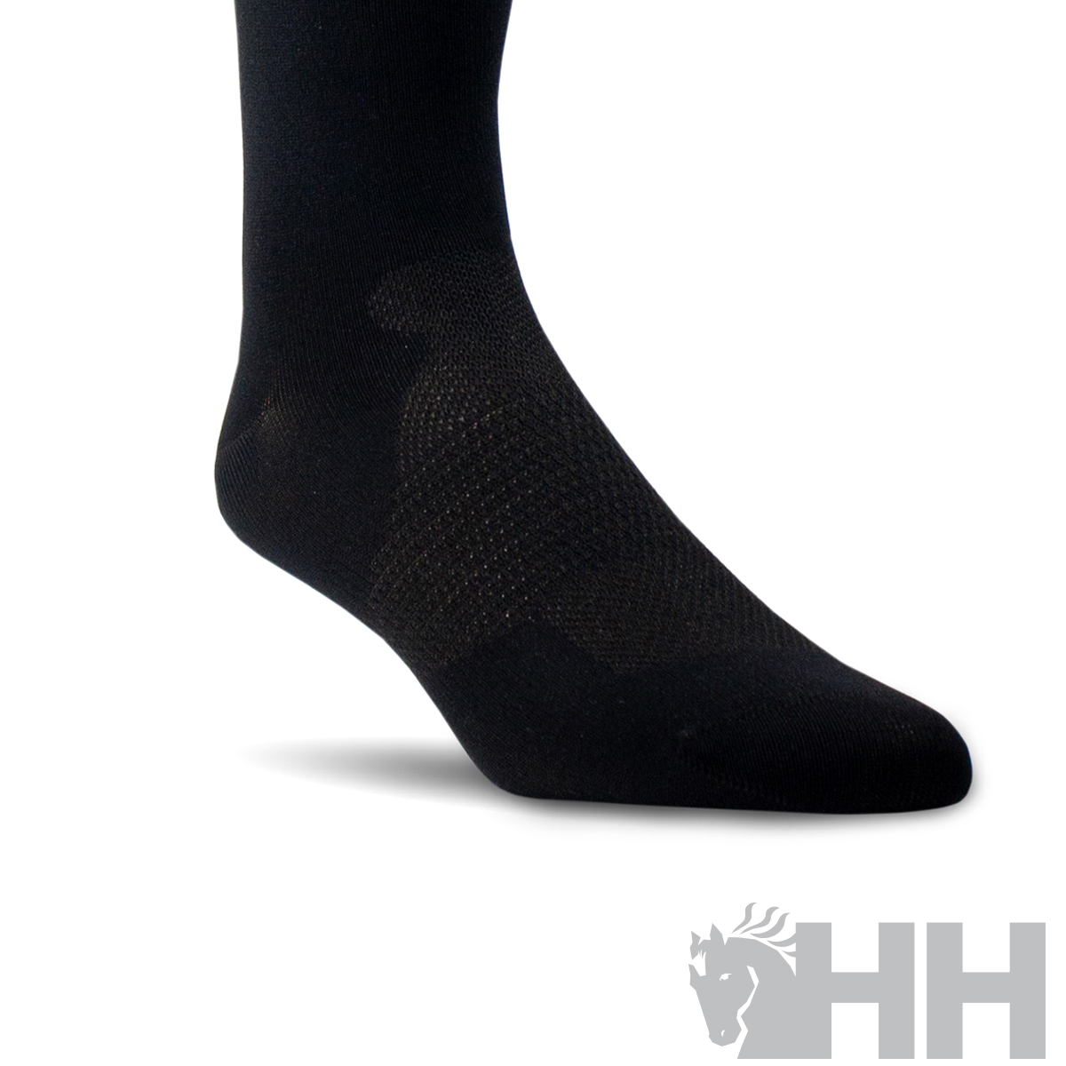 Diseñado para una perfecta posición debajo de las botas altas, este elegante calcetín ofrece una excelente comodidad mientras monta o simplemente lo utiliza. Además de su diseño extra fino, la tela está diseñada con propiedades antimicrobianas y antihumedad que son clave para la frescura del pie en botas ajustadas.