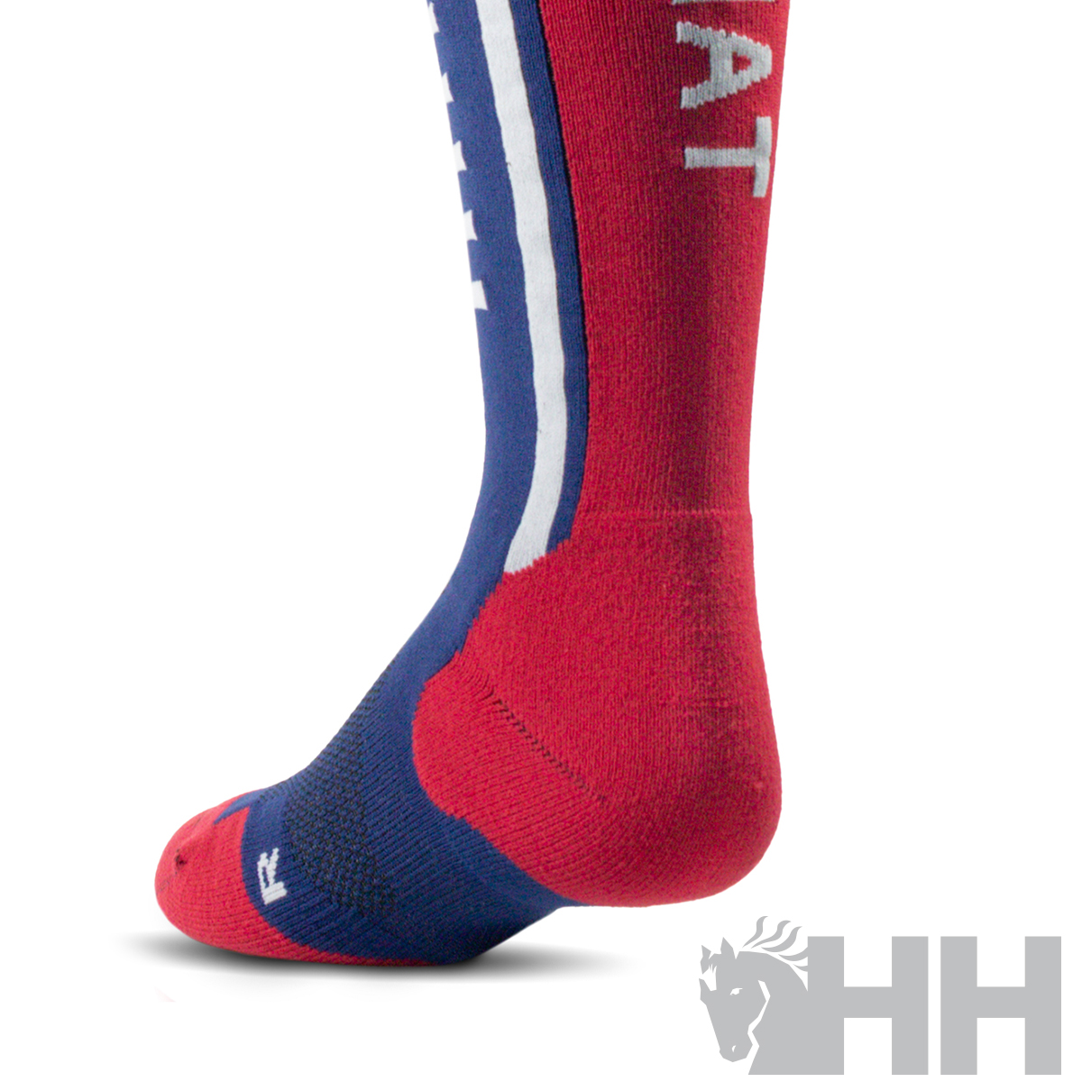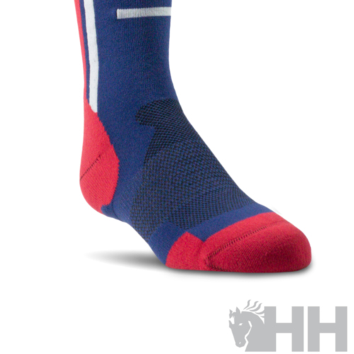 Entra en la comodidad con los calcetines AriatTEK® Slimline Performance. Estos calcetines y su exquisito diseño, ofrecen un acolchado específico para los pies del jinete y le brindan una excelente comodidad en sus botas de montar durante todo el día.